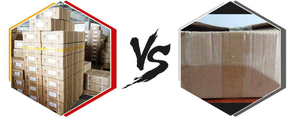 其他生产商为降低成本,一般采用普通纸箱,长途运输中很容易造成纸箱破损、变形,内包装使用廉价再生料胶袋包装,容易破损。 导致问题:包装变形,容易受潮,货物损失,甚至中途丢失,误工误时。